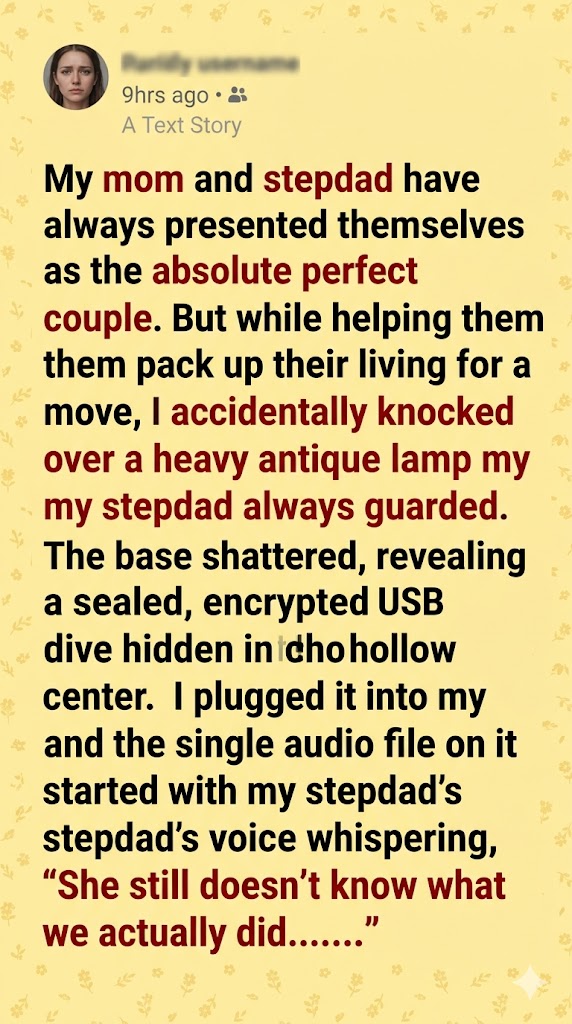 I looked down at the shattered remains of the heavy, bronze-plated antique lamp on the floor. The hollow center was fully exposed, leaving a perfect, clean circle in the dust where the drive had been resting for a decade.