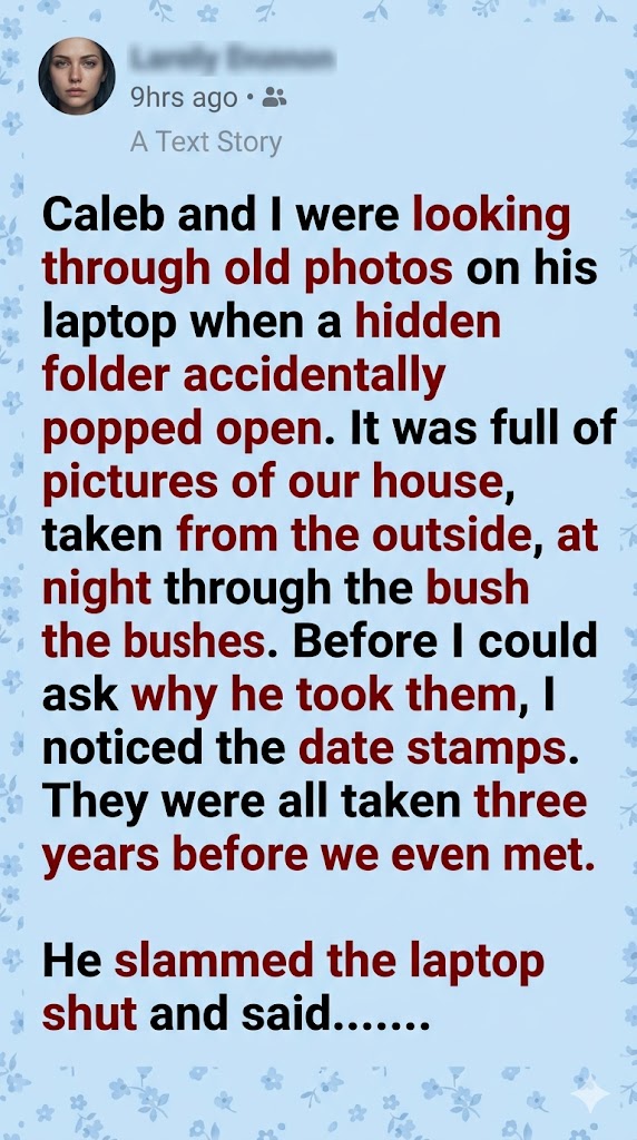 “Not what I think?” My voice was barely a whisper, trembling as the adrenaline hit my bloodstream. “Caleb, those files were dated 2023. You were in my rhododendron bushes three years ago. We only met last year.”