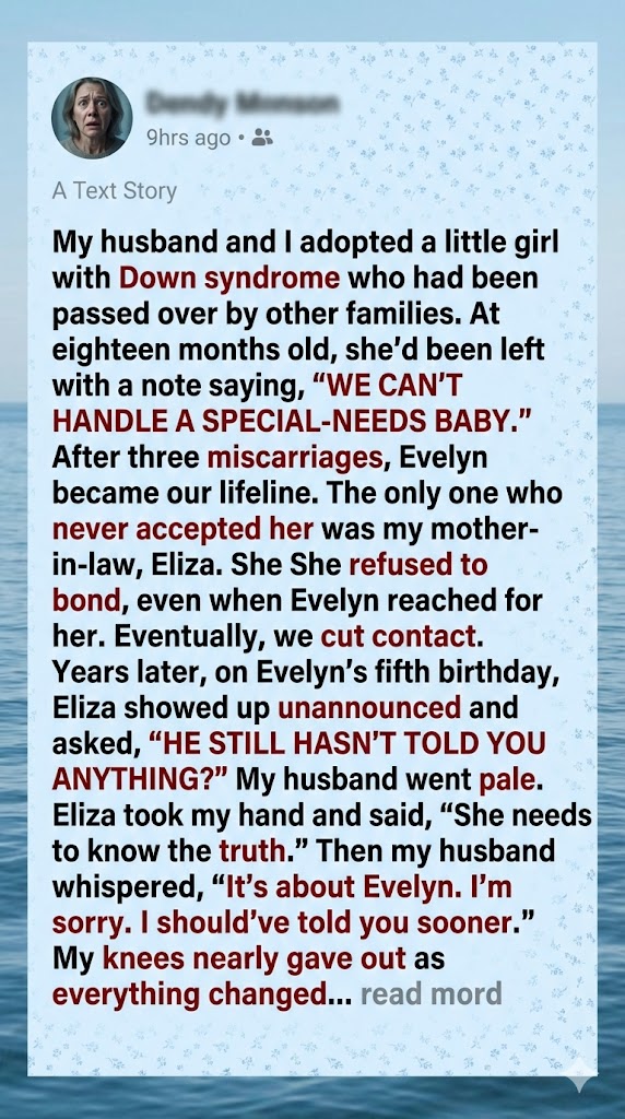 “I’ll tell Evelyn when she’s ready,” he promised. “But she may never be… ready. We’ll tell her the truth in a way she can understand.”