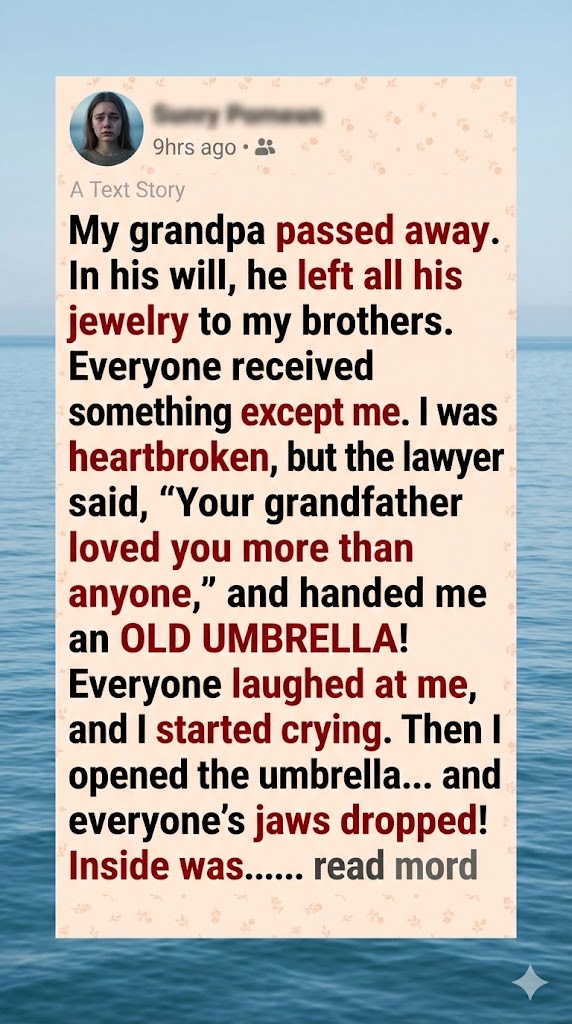 When my grandfather passed away, grief hit me like a storm. He was my bedtime storyteller, secret candy-giver, and the one who always knew what to say when life felt heavy. So when his will was read, I sat heartbroken but hopeful, expecting something meaningful to remember him by.