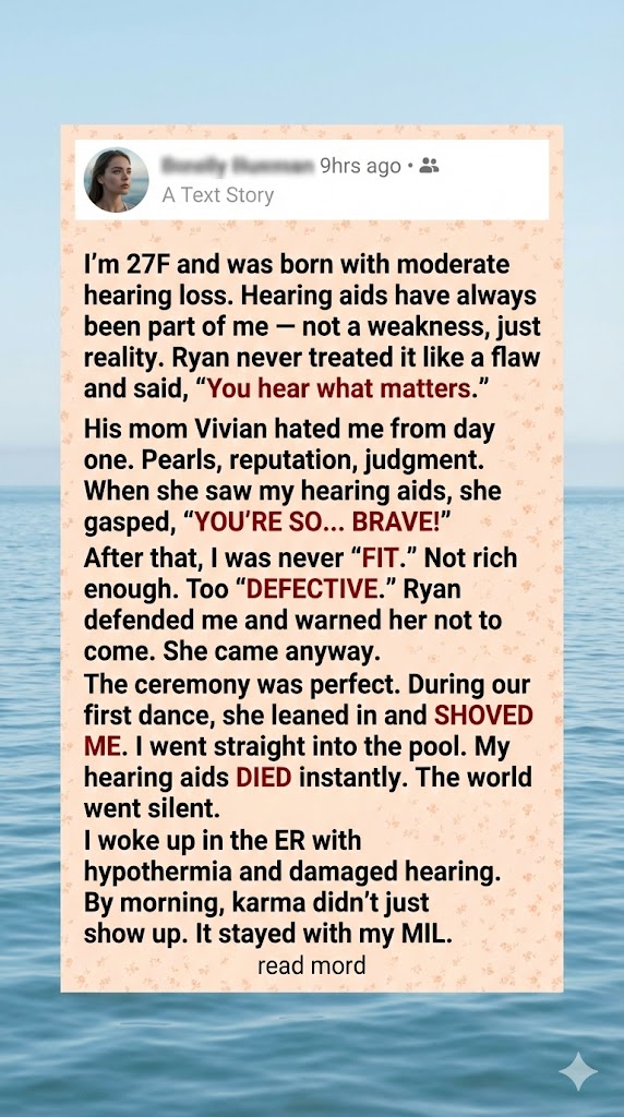 The ride to the hospital was a blur. I couldn’t hear the EMTs. I just stared at the ceiling of the ambulance, soaked and shaking, while Ryan held my hand the entire way. My body trembled from the cold, but the panic had settled deeper. Not just fear, but grief. I already knew my hearing was worse. I could feel it in the silence.