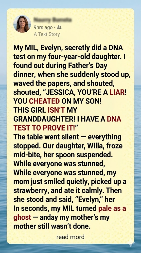 “You cheated on my son. That girl,” she stabbed the air toward Willa. “… that child is not my granddaughter. And I have a DNA test to prove it!”