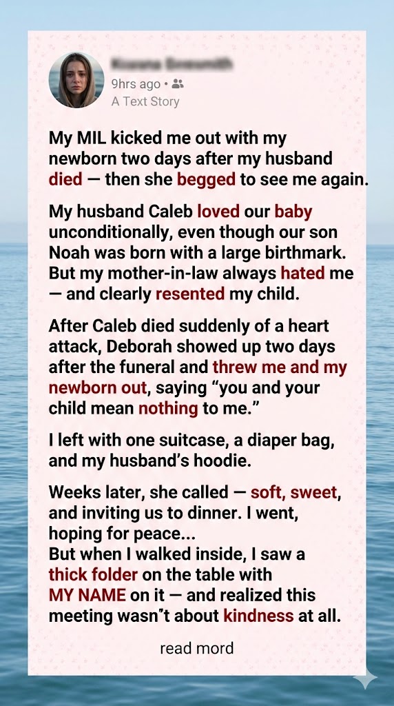 Two days after my husband died, his mother kicked me out with our newborn son. No sympathy. Just “You and your child mean nothing to me.” I left with a suitcase, a diaper bag, and my husband’s hoodie. Weeks later, she called with a sweet voice, inviting us to dinner. I should’ve known better.