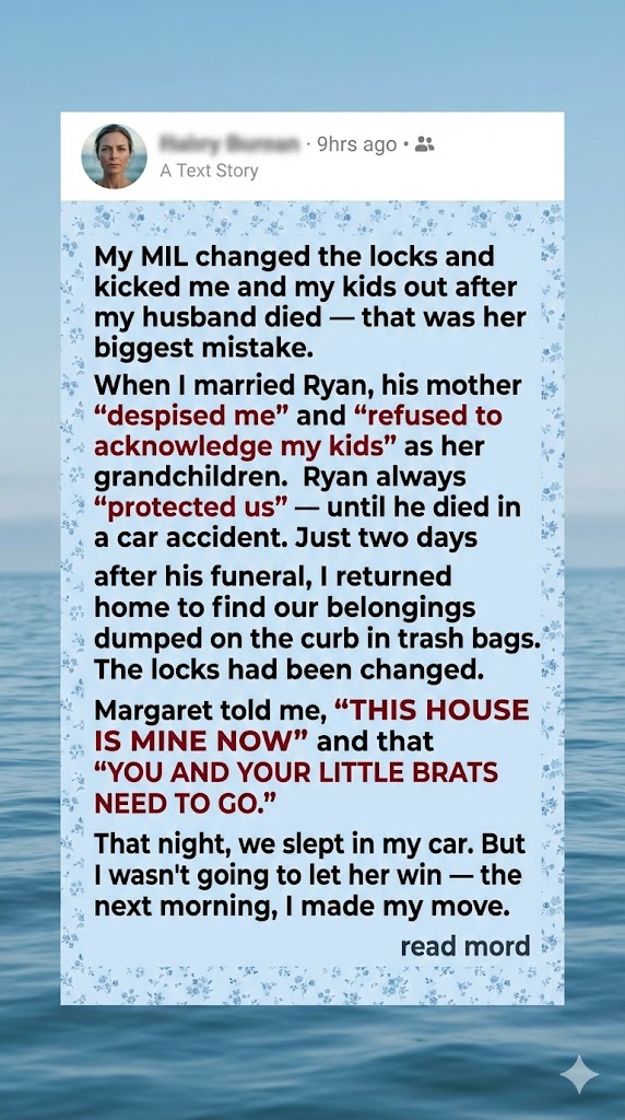 Losing my husband shattered me. But two days after his funeral, my mother-in-law made it worse. She kicked me and my kids out, changed the locks, and left us homeless. She thought she won, but she had no idea she was making the biggest mistake of her life.