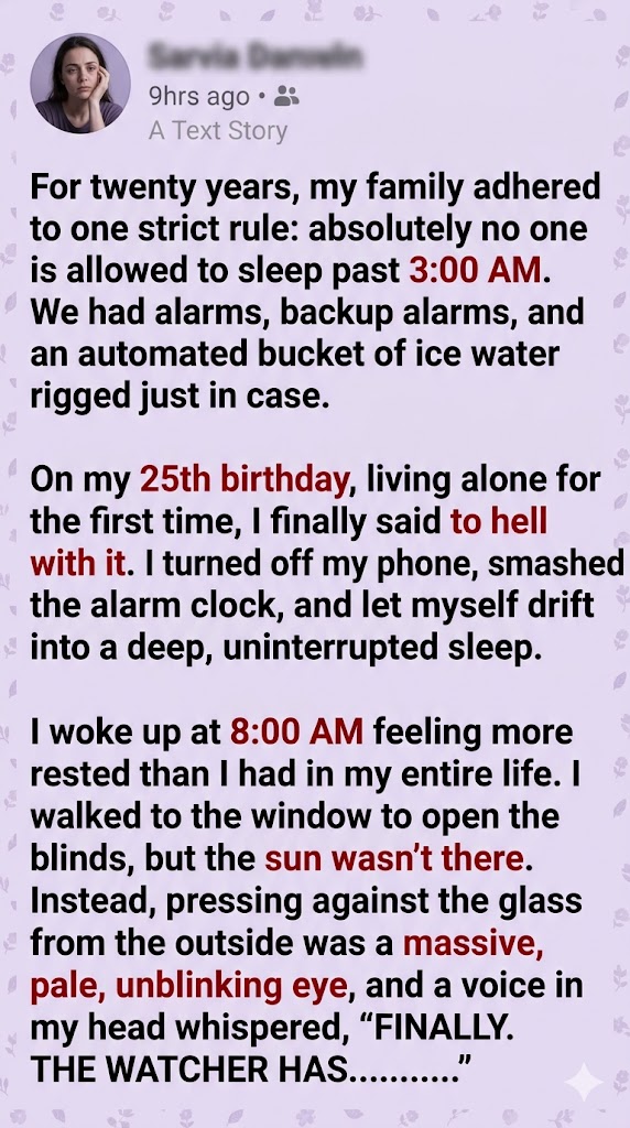 I stumbled backward, my heart hammering a frantic, violent rhythm against my ribs. I tripped over the smashed remains of my alarm clock and collapsed onto the hardwood floor. From the floorboards, I couldn’t tear my gaze away from the window.