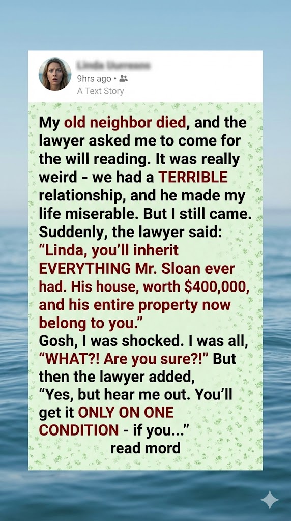 “Linda,” the lawyer said, “you inherit Mr. Sloan’s house. The entire property.”
