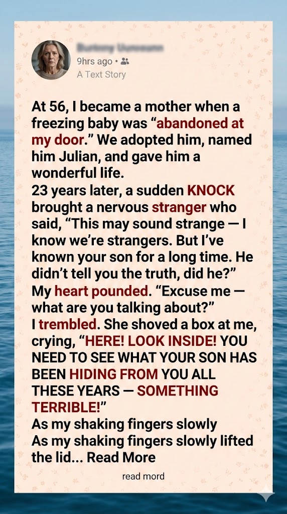 It was a brutal morning. The kind of cold that makes the house groan. I woke up to a sound I thought was the wind—a thin, jagged crying that cut right through the hum of the heater. When I opened the front door, the icy air slapped me across the face, but the sight on the doormat froze me faster. A basket. Inside, a baby boy, his skin a terrifying shade of red, wrapped in a blanket so thin it felt like wet tissue paper.