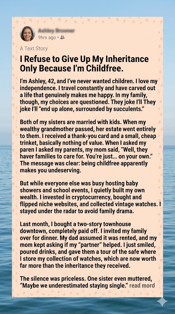 I’m 45, childfree by choice, and for the past decade, I’ve been raising my husband’s two children as my own. My parents never accepted that. To them, motherhood meant biology, not love or commitment. They always pressured me to have “real” children, ignoring the sacrifices I made to build a stable home. My husband and I struggled financially early on, and I chose not to bring more kids into that chaos. I thought they’d respect that. Instead, they decided to leave their entire inheritance to my sister—because she had “real” children. That word shattered something in me.