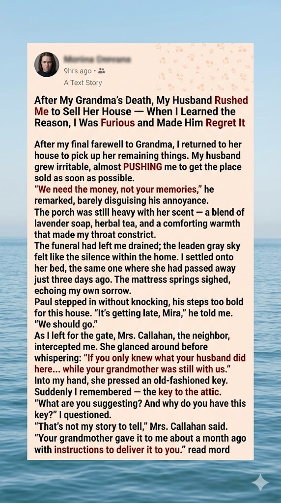 After my grandmother died, my husband Paul urged me to sell her house. I didn’t understand his urgency—until I found a letter in the attic that changed everything.