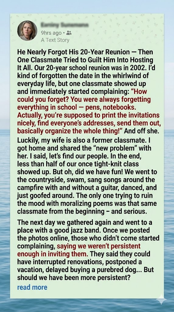 He Nearly Forgot His 20-Year Reunion—Then One Classmate Tried to Guilt Him Into Hosting It All