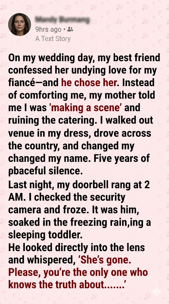 “Five years ago, he left me at the altar for my best friend. Tonight, he’s at my door with her child—begging for his life.”