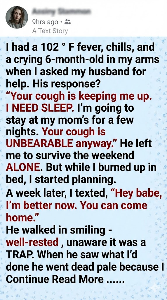When I told her the truth—and sent her a video of me struggling to feed our son while shaking with chills—she didn’t just take my side. She was horrified. She realized she was raising a man who would abandon his vulnerable family for a nap.