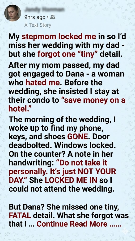 Epilogue: Dana is currently facing criminal charges and a restraining order. My dad dumped her immediately and is in therapy. And as for the condo? I had the locks changed the next day. Dana wanted to “save money on a hotel,” but ironically, her bail cost a whole lot more.