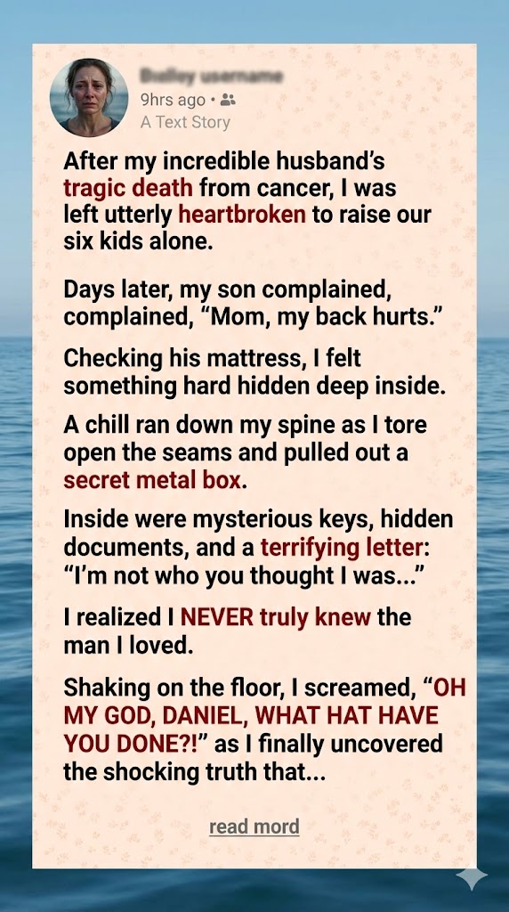 “My love, if you’re reading this, it means I am no longer with you. There was something I couldn’t tell you while I was alive. I’m not who you thought I was, but I want you to know the truth…”