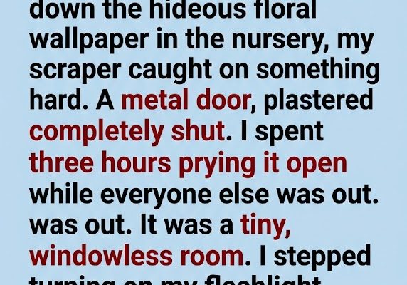 I didn’t even have time to scream before the heavy metal door slammed shut behind me, plunging the room into absolute darkness. A heavy deadbolt slid into place, echoing like a gunshot through the walls of our dream home.