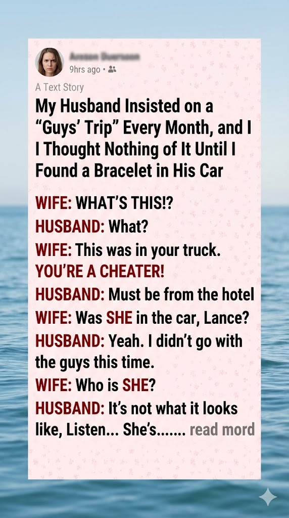 “And the ‘guys’ trips’?” I asked, my voice shaking.