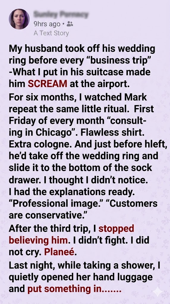 Beneath the trap, I slipped in a neatly folded, brightly colored document: our freshly notarized divorce papers. Right on top of the legal documents, I scattered a dozen high-definition, printed screenshots of his texts with “Chicago”—whose real name was Ashley, and who actually lived three blocks away.