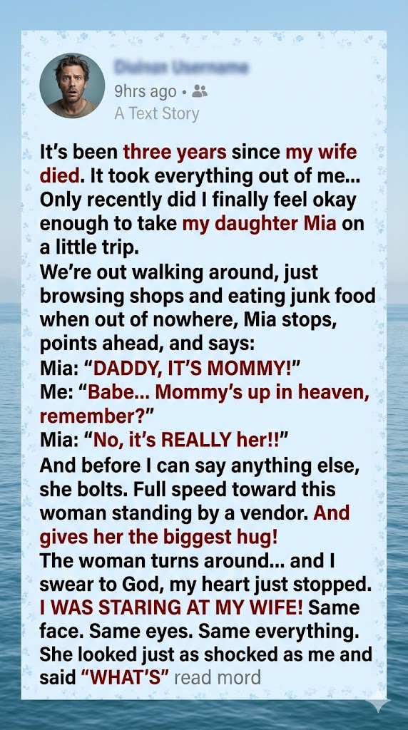 “I’m sorry,” I managed to say, stepping forward. “You just… you look exactly like my wife. She passed away three years ago.”