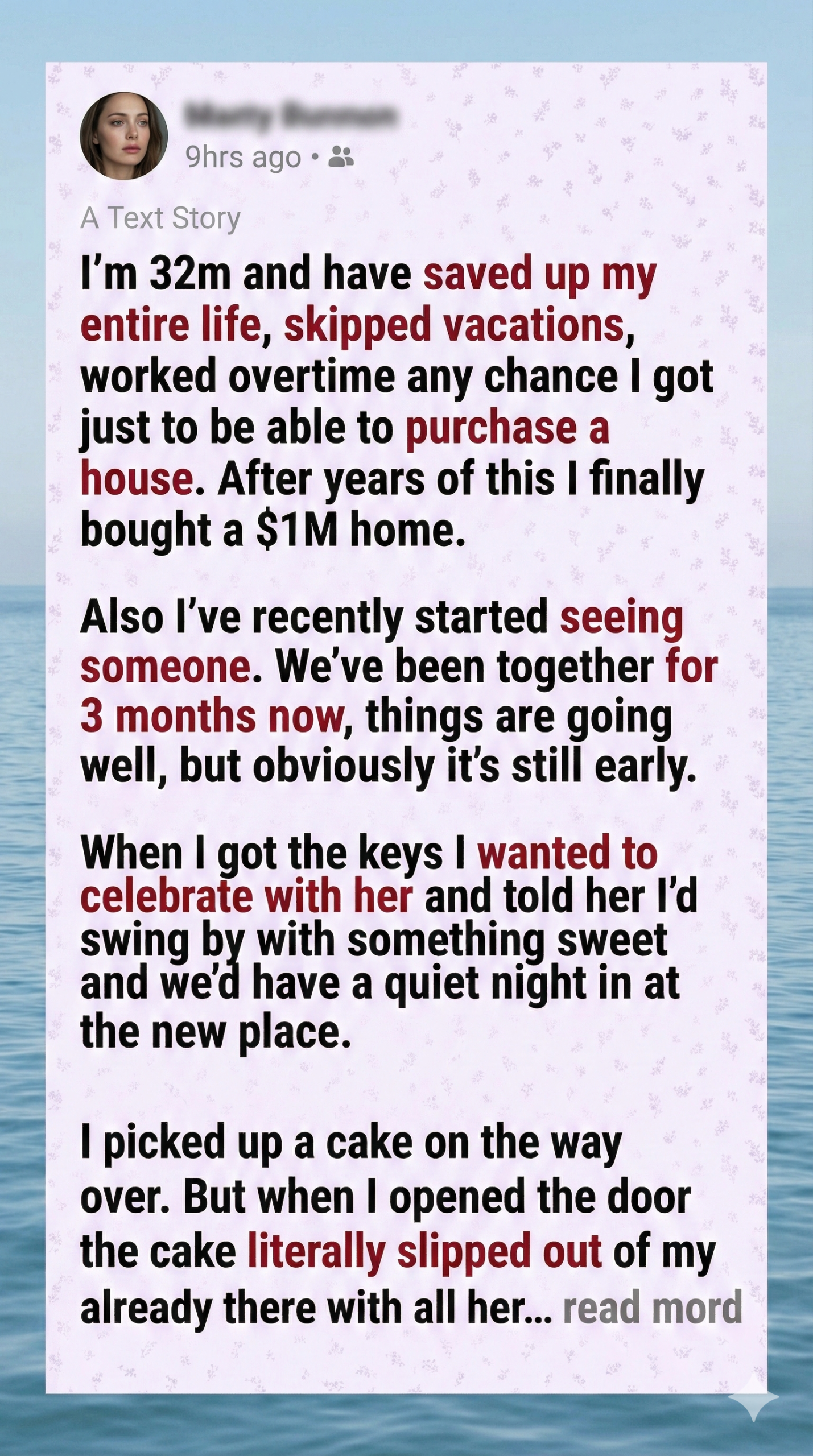 I worked for 14 years to save up and buy my dream house. It wasn’t easy. There were nights I went to bed hungry because every penny counted. The day I finally got the keys to my own place was supposed to be the happiest of my life. But when I opened the door to celebrate with my girlfriend… I froze.