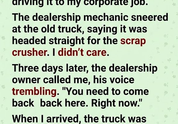 Mr. Miller, the dealership owner, stood by a rolling tool tray, wiping his greasy hands on a rag with frantic, jerky motions. The mechanic who had mocked my truck three days ago was nowhere in sight. The shop was completely empty, the rolling doors pulled firmly shut against the midday sun.