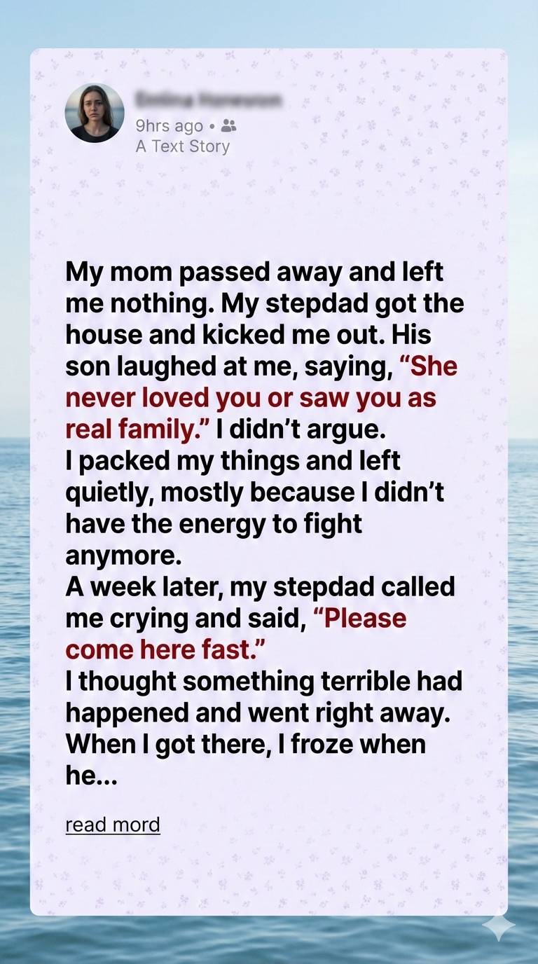 My stepfather knelt beside me. “I was wrong,” he admitted. “I let grief turn into greed. I told myself stories to ease my guilt. It was easier to believe them.”