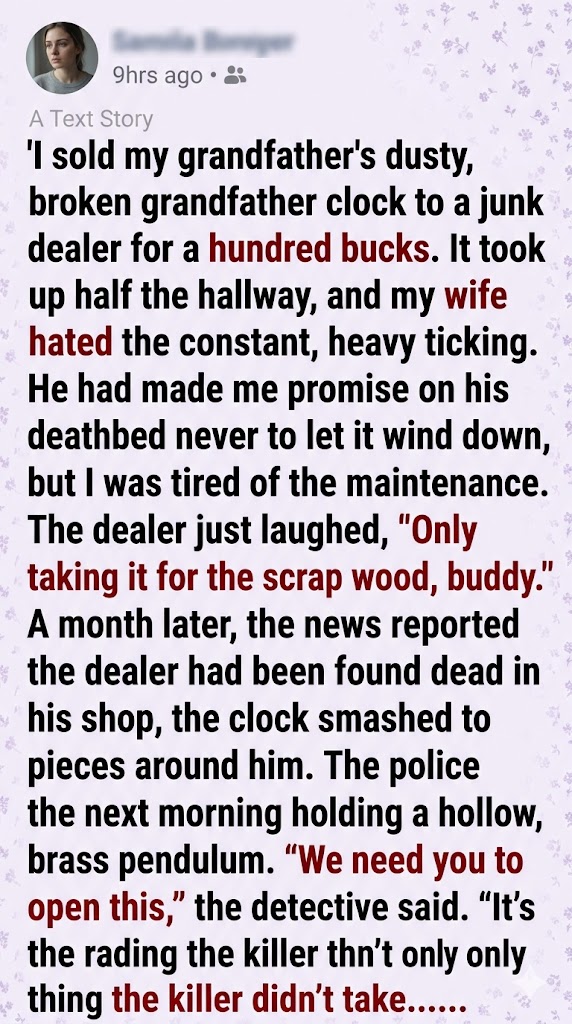 Then, the realization hit me with the force of a freight train. My grandfather hadn’t been keeping the clock wound to maintain the gears. He was keeping it wound to power a cage. The heavy, rhythmic ticking that Sarah had hated so much wasn’t a mechanism—it was a heartbeat. The clock was a prison for whatever ancient debt our family had accrued, and the constant motion of the pendulum was the only thing keeping the lock sealed.