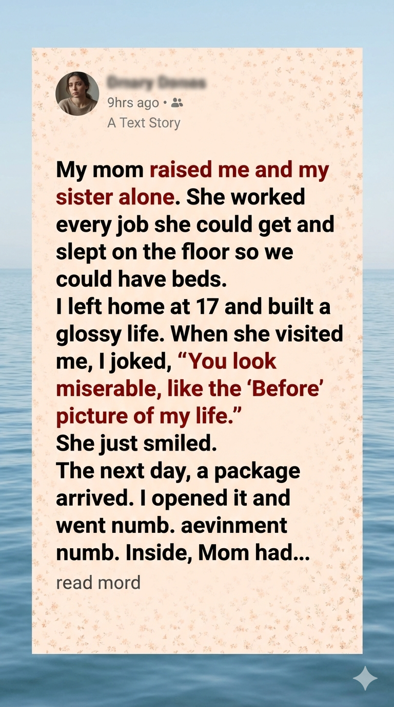 That’s how I remembered her—hair tied loosely, hands roughened by cleaning chemicals, uniforms changing with every job, yet exhaustion always constant. She raised my sister and me alone, mornings in diners, afternoons cleaning offices, some nights at warehouses.