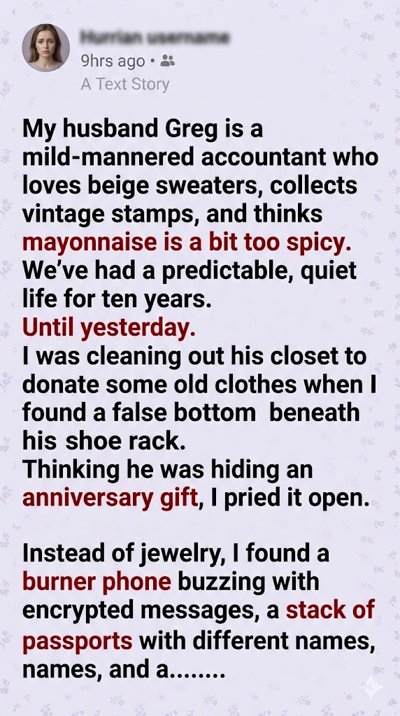 My hands shook as I stared into the hidden compartment. Greg? My Greg? The man who broke out in a stress rash when we switched our internet provider?