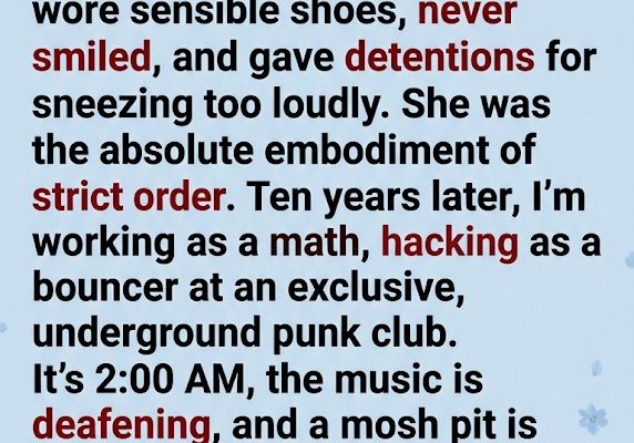 The neon skull mask she was wearing had slipped sideways, revealing those unmistakable, piercing gray eyes that had once vaporized my confidence during a pop quiz on quadratic equations.