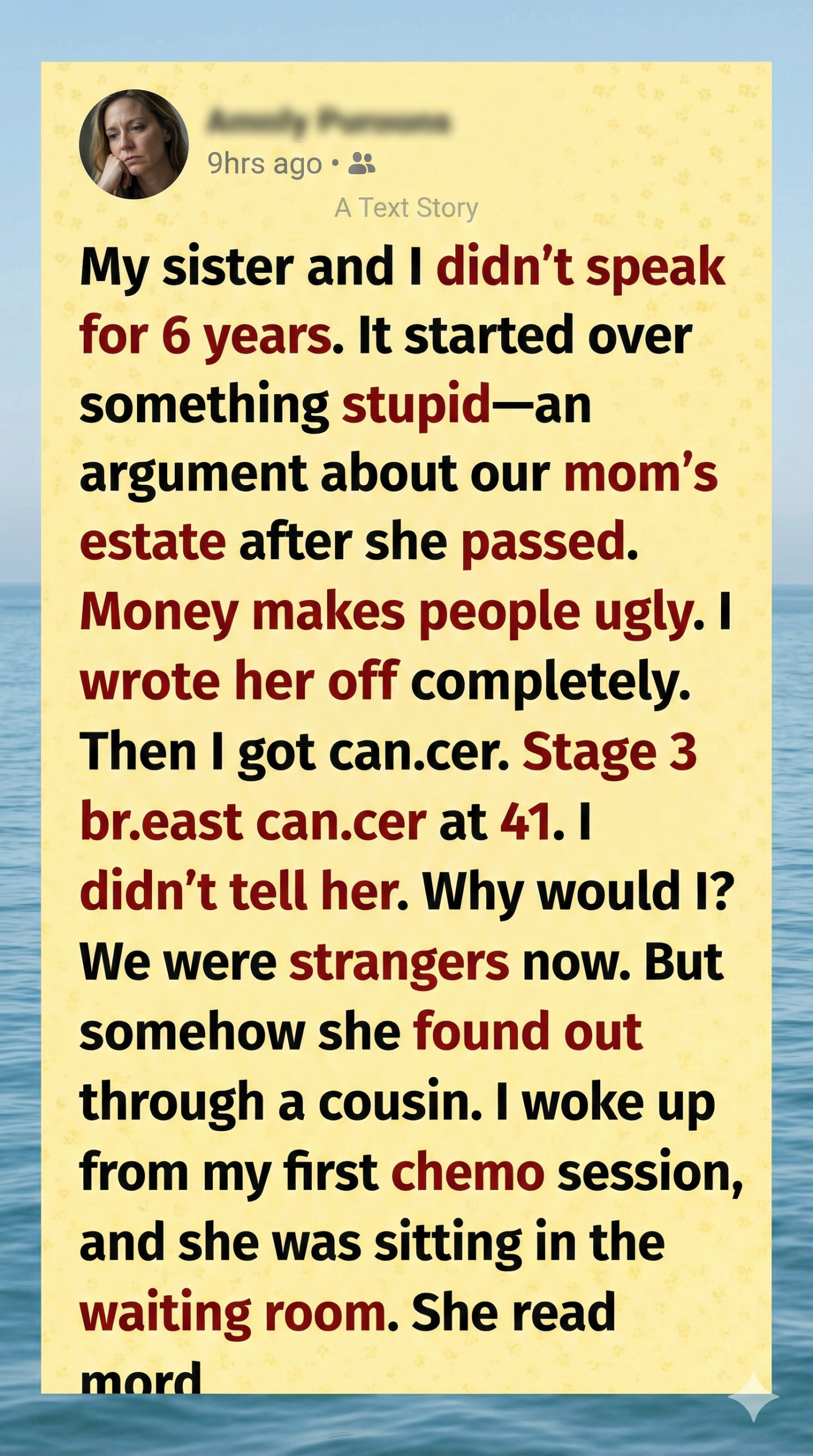 It started over something stupid—an argument about our mom’s estate after she passed. Grief does strange things to people. We were both hurting, but instead of holding each other up, we tore each other down. Words were said that couldn’t be taken back. I told her I never wanted to see her again.