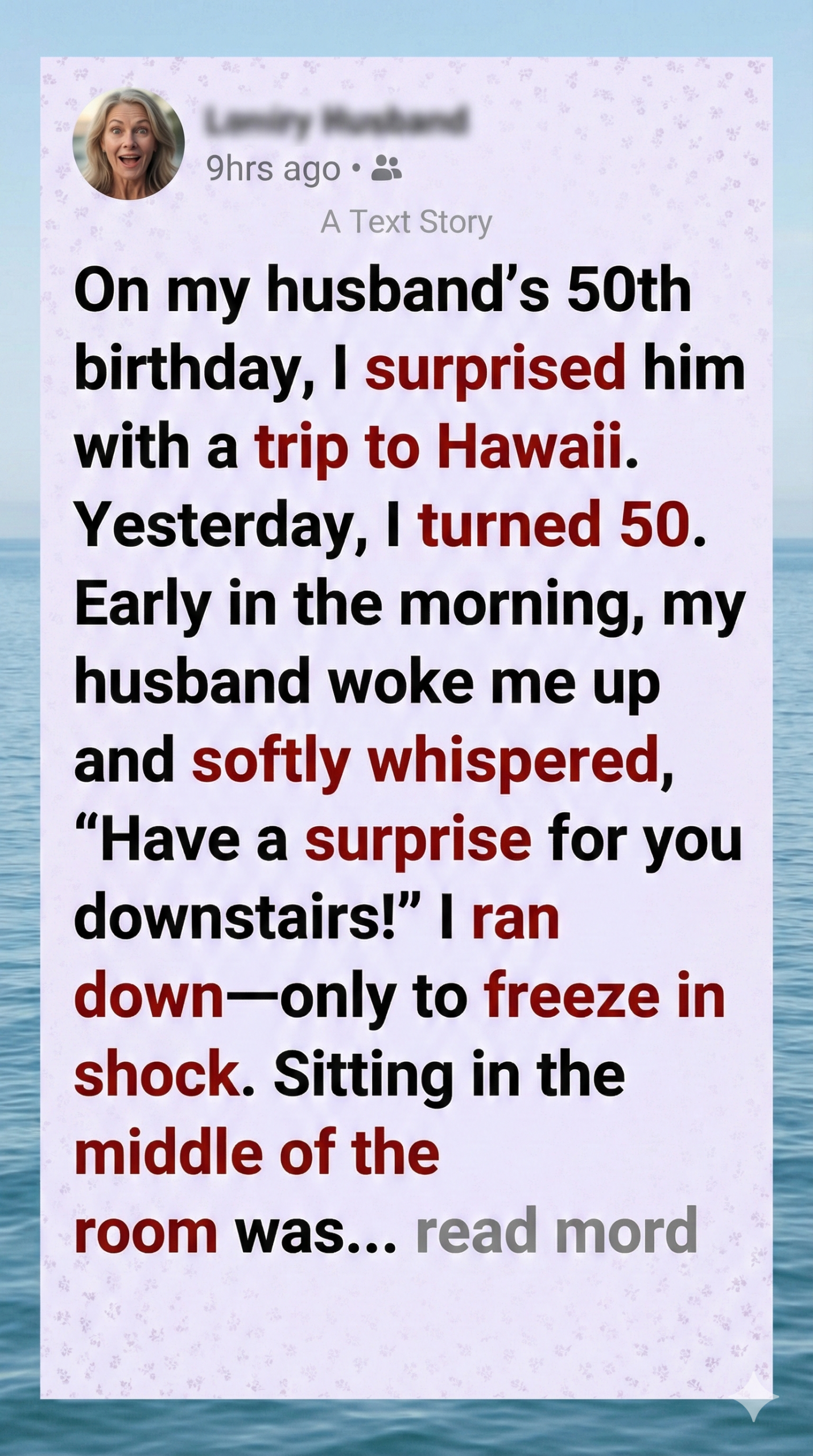 For my husband’s fiftieth birthday, I spent months crafting something meaningful. I didn’t want to give him just a thing—I wanted to give him a memory, an experience, a feeling. I poured over maps, traced routes, saved images of sunsets, and quietly planned a trip to Hawaii. I hoped the endless ocean would speak for me, showing that our years together had been steady, wide, and enduring—even when words fell short.