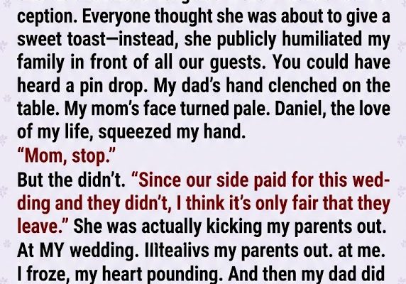 That’s what my MIL said, smiling right at my parents as she raised her glass in the middle of our reception. Everyone thought she was about to give a sweet toast—instead, she publicly humiliated my family in front of all our guests.