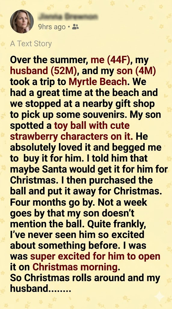 I immediately pulled my husband aside, furious. I reminded him that we bought that specific ball in Myrtle Beach four months ago, that our son had asked about it every single week, and that it was his main Christmas present. My husband just rolled his eyes.