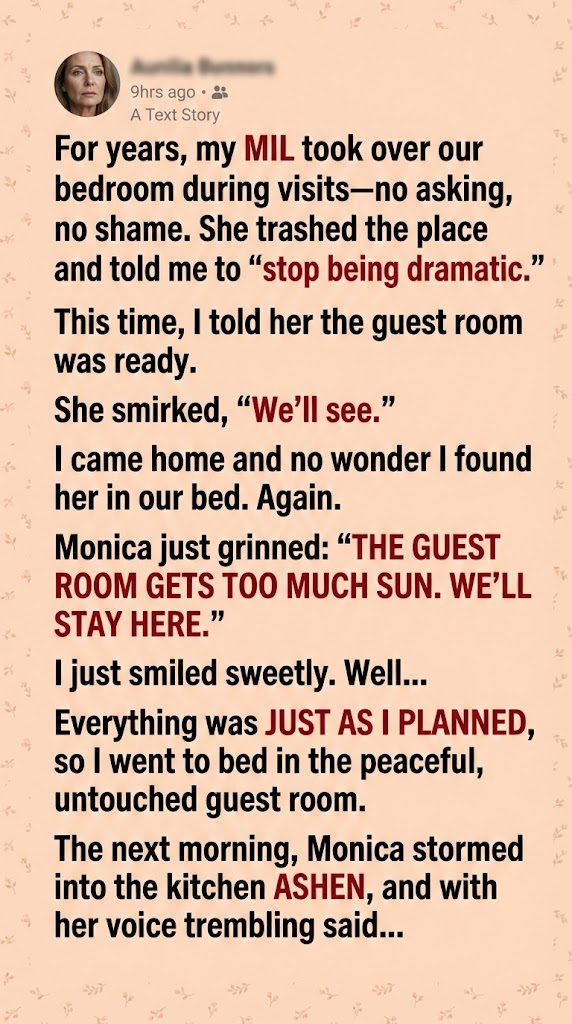 I paused for effect. “That’s actually why I prepared the guest room for you, Monica. I was terrified he was in our bed and didn’t want you to get a scare. But when I tried to offer you the clean, snake-free guest room, you cut me off and insisted on taking the master. You were so confident, I figured… well, who am I to argue with you?”