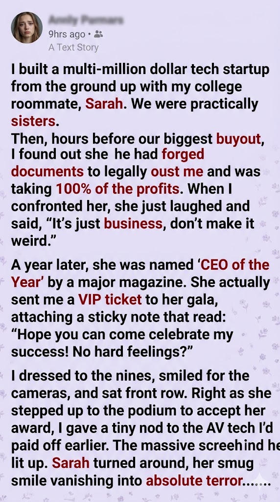Sarah lunged for the microphone, her hands shaking so violently she knocked the heavy stand over with a screeching burst of audio feedback. “Turn it off! Cut the feed!” she shrieked, her carefully curated ‘CEO of the Year’ poise shattering into pure, unadulterated panic.
