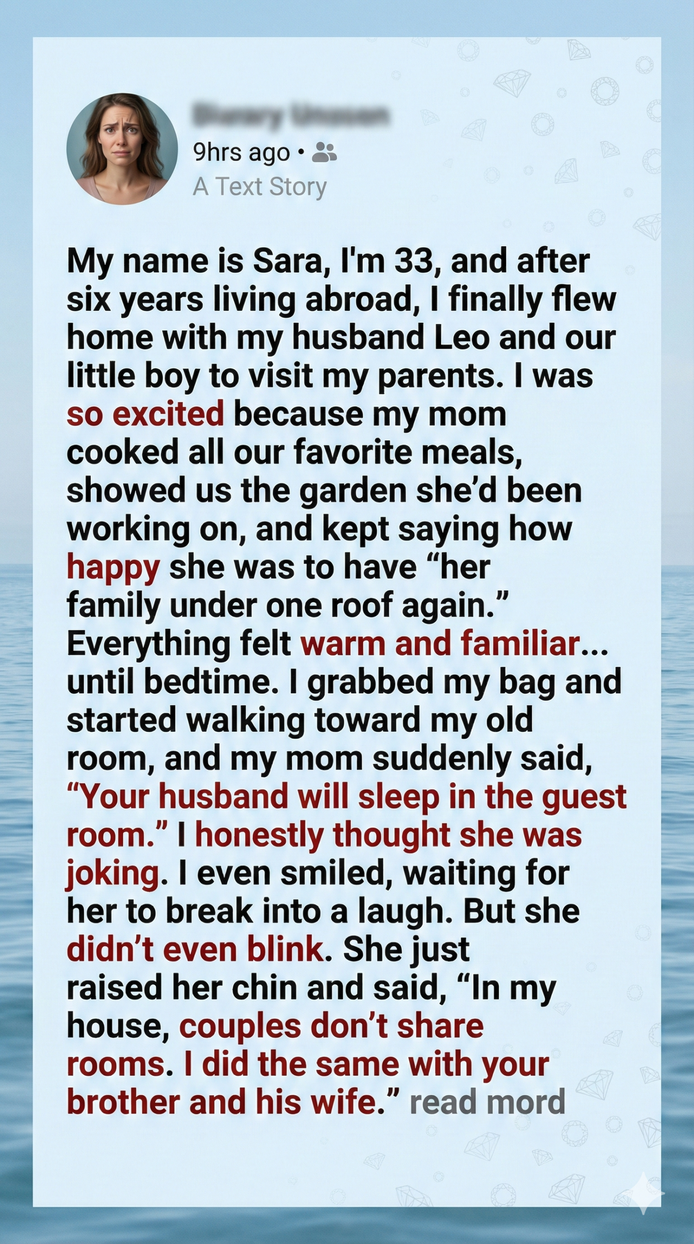 My mother and I have always shared a complicated, often strained relationship, primarily because she has an extremely outdated, rigid idea of what “respect” and “family” truly mean. Now that I am twenty-eight years old, married, and have a beautiful daughter, I still visit her house in our small hometown occasionally, always hoping to bridge the emotional distance between us. However, every time we visit, the same incredibly awkward, ridiculous conflict arises immediately, centered entirely on where my husband, Ben, and I are allowed to sleep. My mother insists on separating us every single night under her roof, treating us like teenagers who are merely dating or visiting friends, completely ignoring the reality that we are a legally married couple with a child.