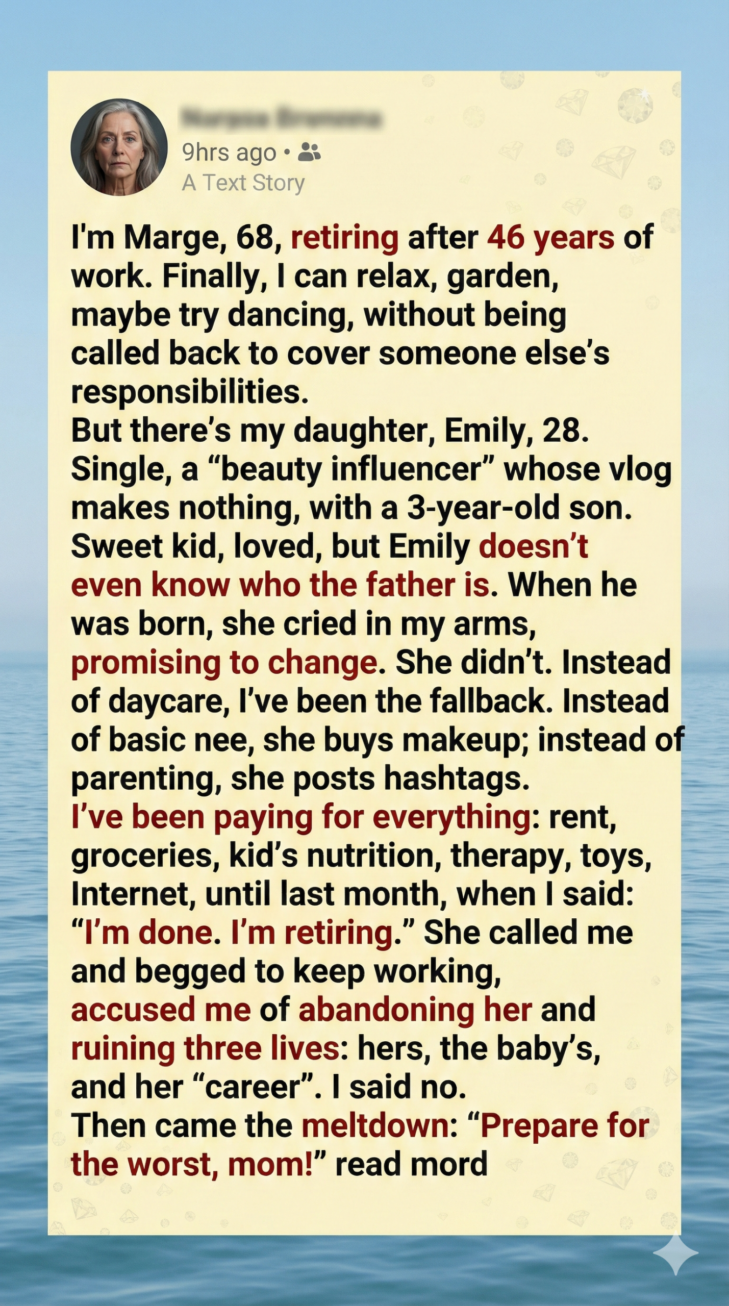 So yes, I refused to sacrifice my retirement to rescue my spoiled daughter and her baby. And in doing so, I gave us both the chance to grow. Love isn’t always about saying yes. Sometimes, it’s about saying no—and meaning it.