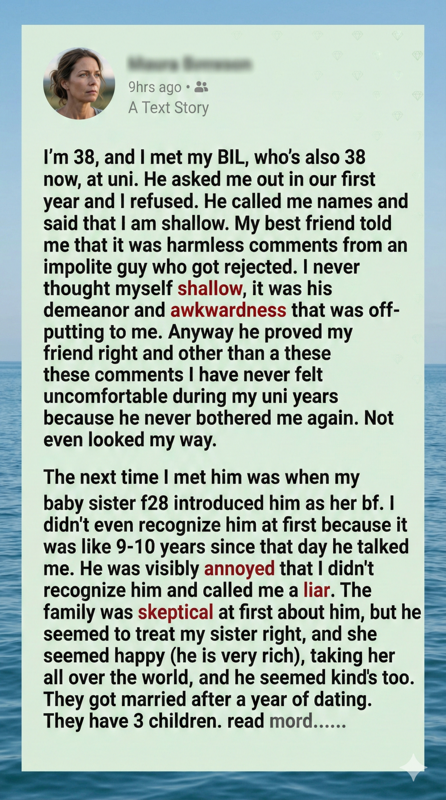 I met my brother-in-law in college, where he asked me out and I declined. He lashed out, calling me shallow, and I brushed it off as immature bitterness. Years passed, and I forgot about him—until my younger sister introduced him as her boyfriend. I didn’t even recognize him. He was now wealthy, charming, and soon became family. I tried to move on, marrying a wonderful man, but my brother-in-law never did. He held onto that ancient grudge like a trophy.