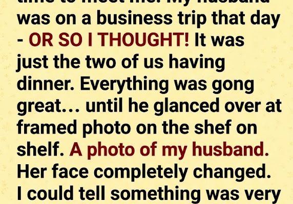 My daughter brought her boyfriend home for the first time to meet me. My husband was on a business trip that day—OR SO I THOUGHT! It was just the three of us having dinner. Everything was going great… until he glanced over at a framed photo on the shelf. A photo of my husband.