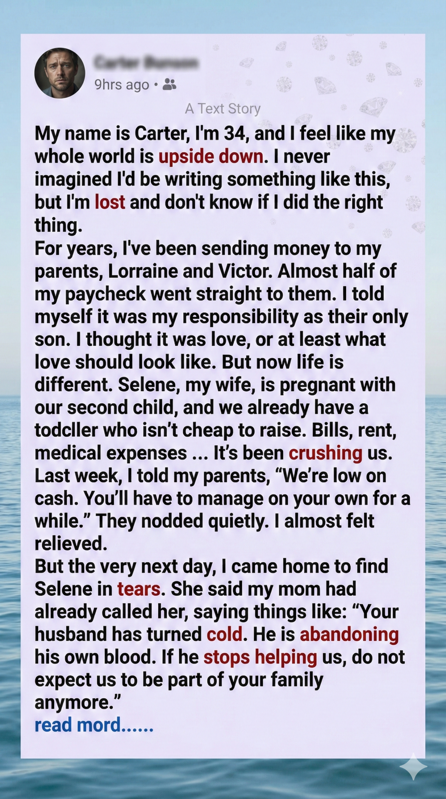 Now I live in the space between two families—the one I was born into and the one I’m building. Every call from my parents stirs guilt, but I’m learning to choose peace over approval. I ask myself daily: Am I cruel for pulling back, or finally growing up? I don’t feel like a winner. I feel like a man learning how to breathe.