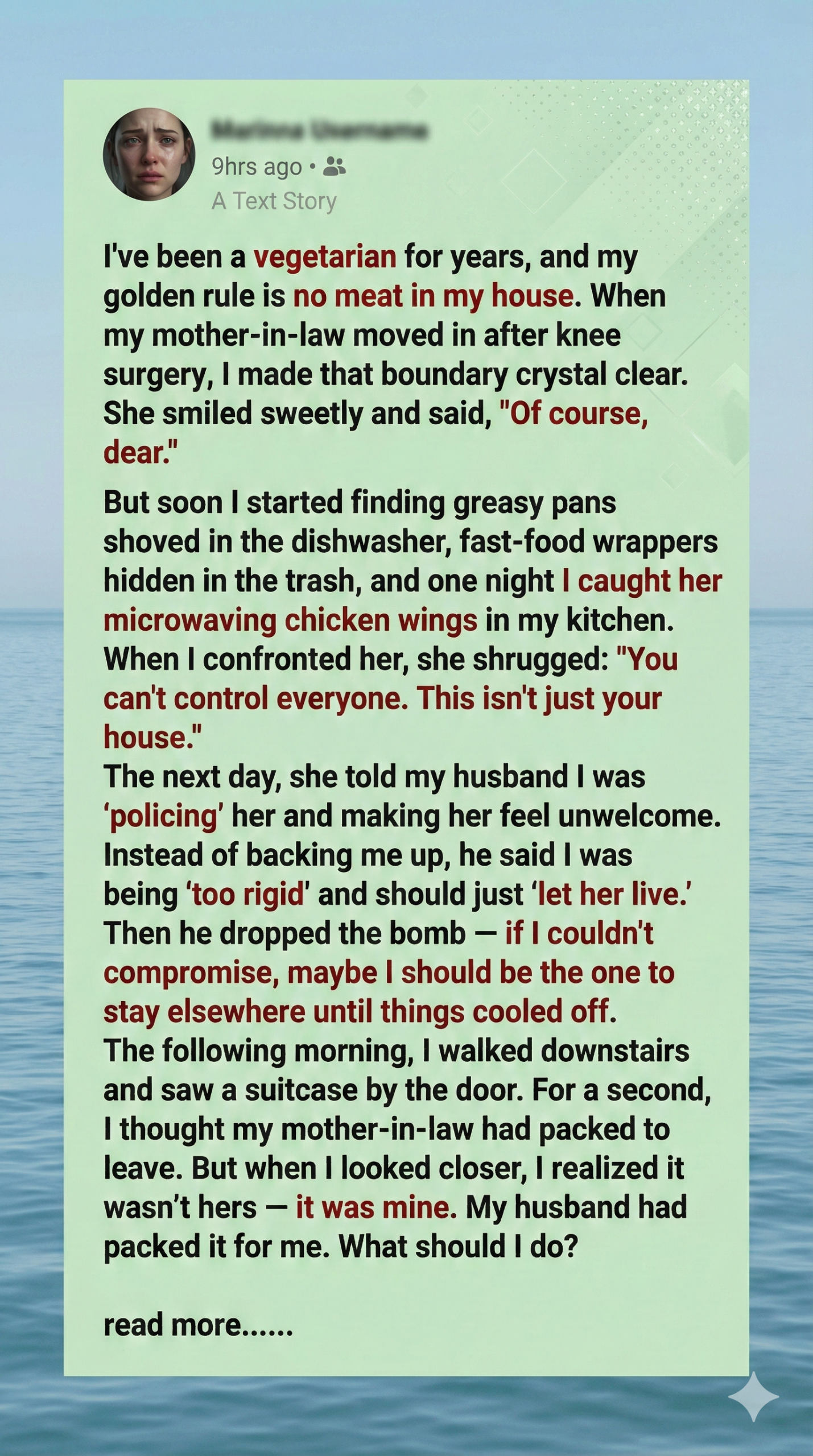 I don’t know what hurts more: the betrayal or the silence. I’ve considered posting photos and memories online—not to accuse, but to remind the world I exist. Maybe I’ll leave her a gift with a note: “Even if you want me invisible, I’ll always be your mother.” I won’t confront her in rage. I’ll speak calmly, truthfully: “I’m Rowan’s mom, and I’m alive.” If she won’t come back, I’ll find closure in my own way. I’ll plant a tree, light a candle, and reclaim my story. Because I deserve to be remembered.