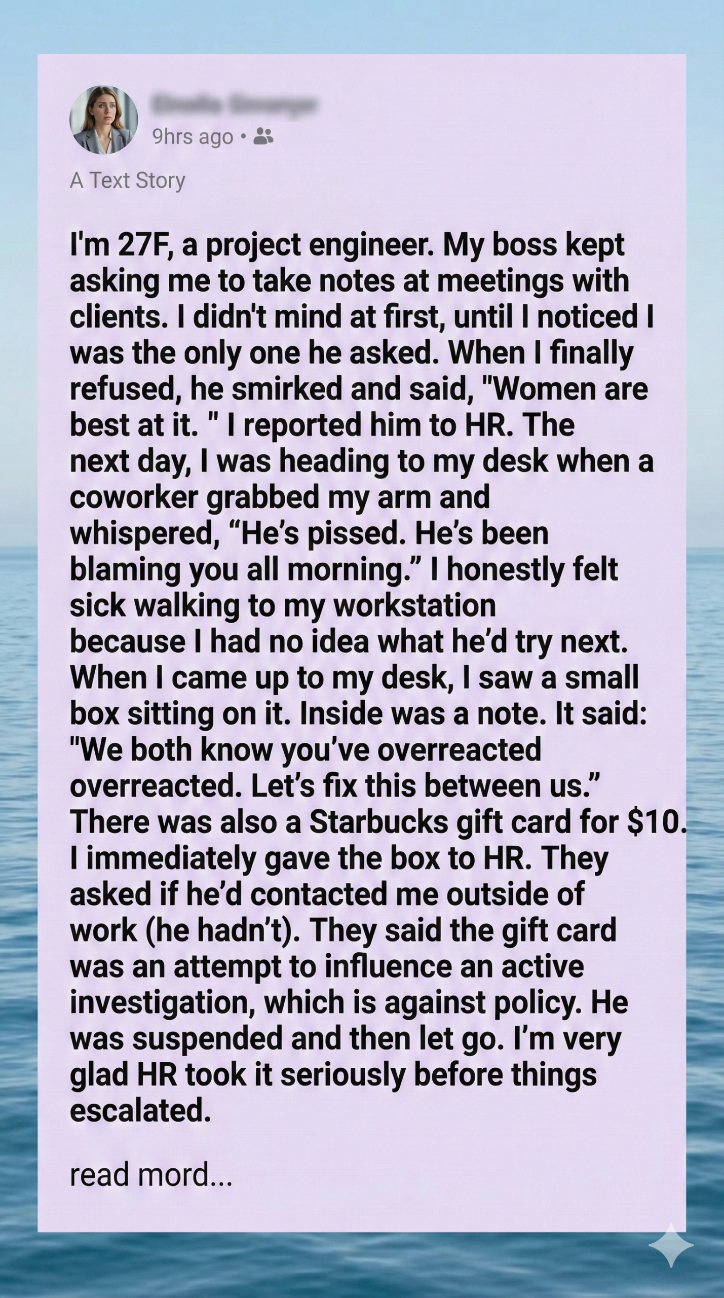 The outcome was a powerful, validating victory, but it did leave me with a single, nagging question: was I fundamentally wrong for not giving him an initial opportunity to discuss the issue privately before immediately escalating the matter to HR? After the blatant sexism of his comment and the subsequent manipulative gift card, I honestly don’t think so. I realized that a private conversation would have served only to expose me to more excuses and gaslighting, protecting his reputation while leaving my professional dignity completely unprotected. I acted decisively to uphold my own professional boundaries and ensure my work was judged on my engineering skills, not on an outdated, sexist expectation of free secretarial labor.