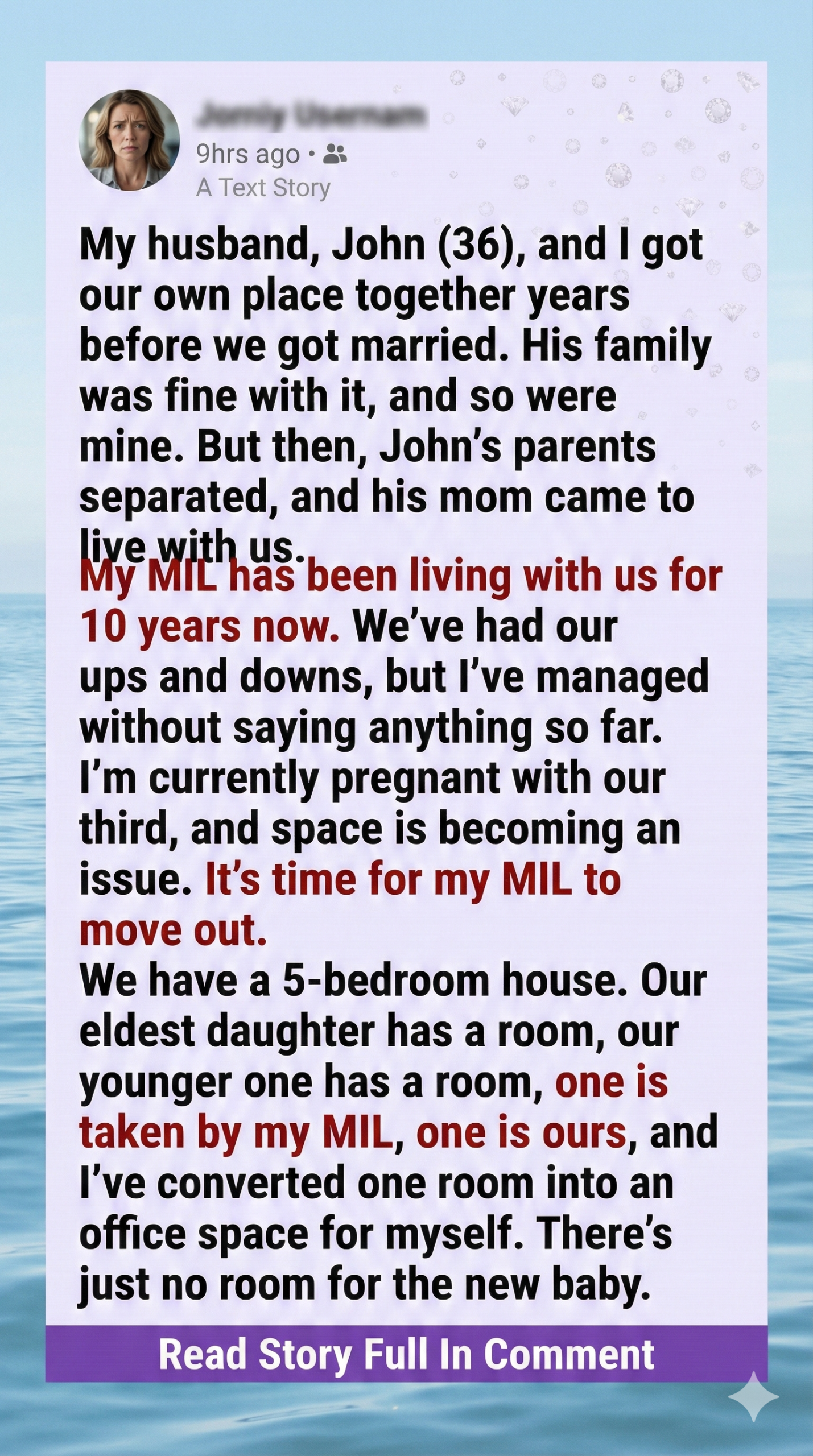 For ten years, my mother-in-law has lived with us. It started when John’s parents separated, and she moved in temporarily—or so I thought. At first, I didn’t mind. We had space, and I wanted to be supportive. But now, I’m pregnant with our third child, and our five-bedroom house suddenly feels cramped. My MIL occupies one room, our daughters have theirs, and I’ve converted the last into my office. There’s nowhere for the new baby, and I’m exhausted from pretending everything’s fine.