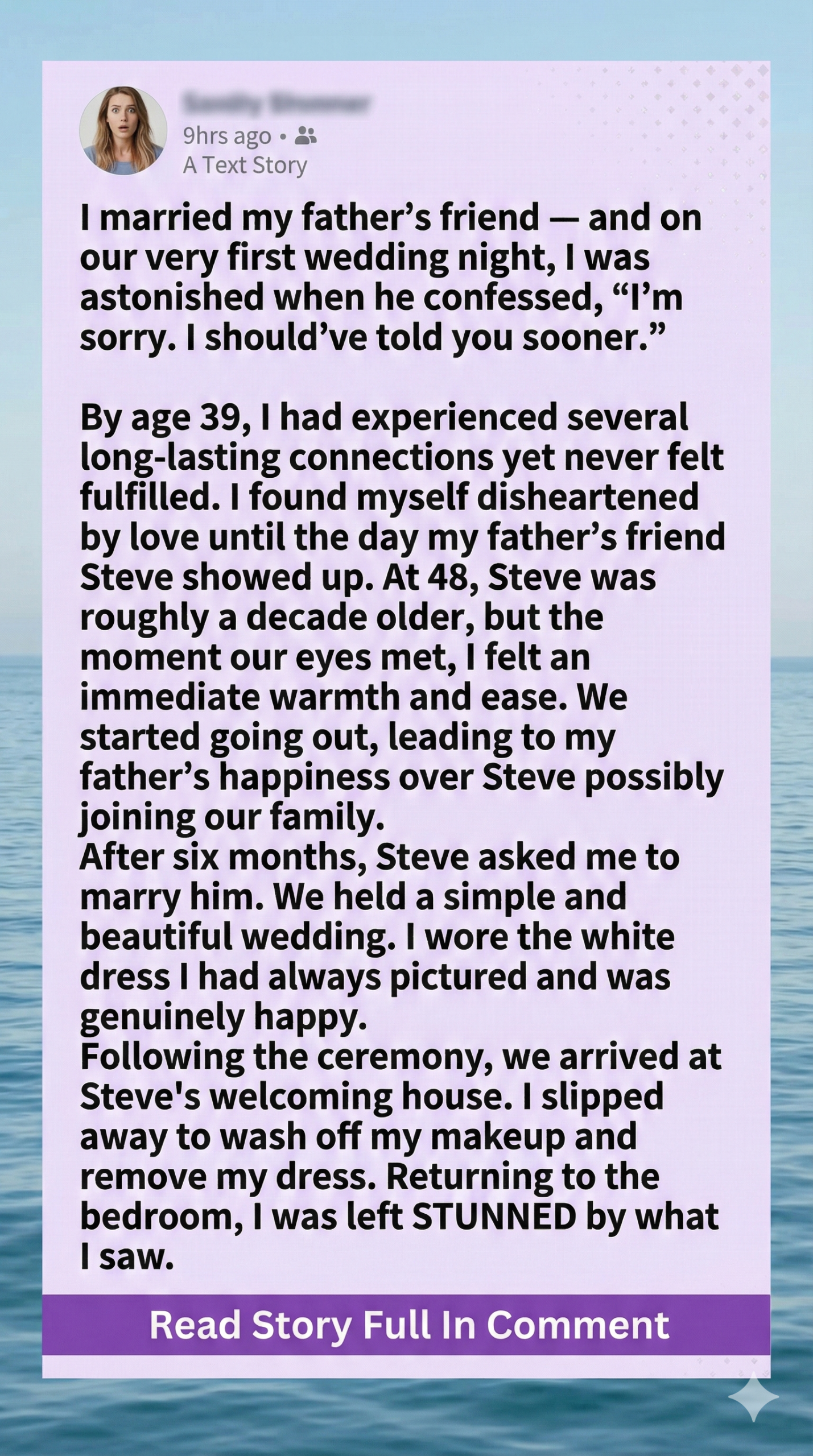 That night, after all the well-wishes and hugs, we finally had some alone time at our new house. I slipped into the bathroom, my heart full and light, ready to start our life together. But the minute I slipped back into the bedroom, I was greeted by a sight that shocked me. Steve was sitting on the edge of the bed, his back to me, talking softly to someone—someone who clearly wasn’t there. “I wanted you to see this, Stace. Today was perfect… I just wish you could’ve been here.” I stood frozen in the doorway, trying to make sense of what I was hearing. “Steve?” My voice was small and unsure.