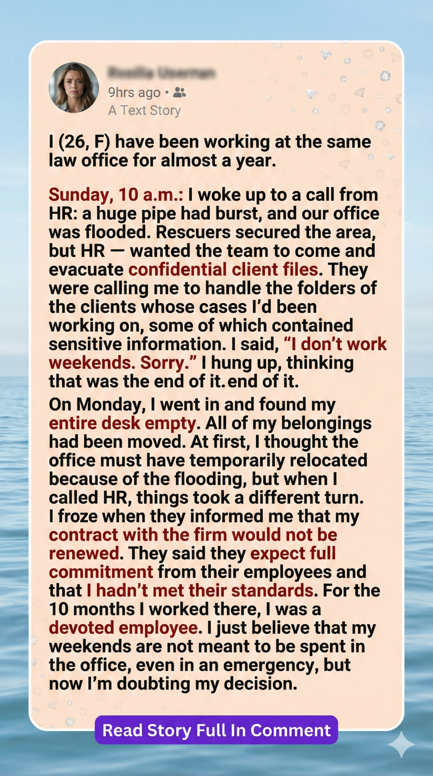 Now, I mentor new hires. I tell them: your worth isn’t measured by how much you sacrifice. It’s measured by how well you protect what matters. Work will always ask for more. You have to decide when enough is enough. My story isn’t about rebellion—it’s about respect. For myself, for my time, and for the life I want to live outside the office walls.
