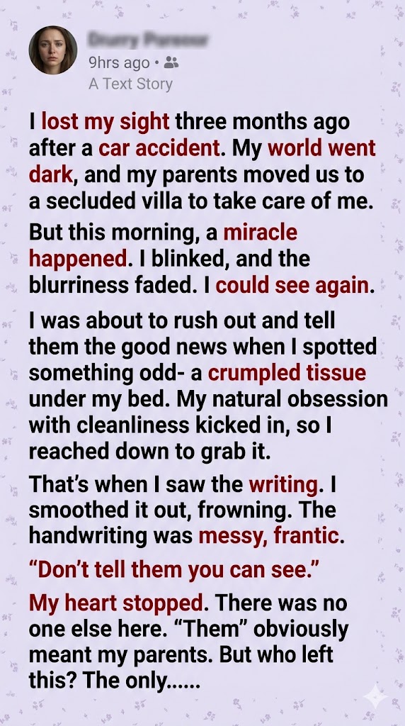 I sat at the table, forcing myself to chew, forcing myself to smile, while two impostors impersonated my family with chilling, flawless accuracy. Where were my real parents? Whose secluded villa was this? And what exactly happened during that “car accident” three months ago?