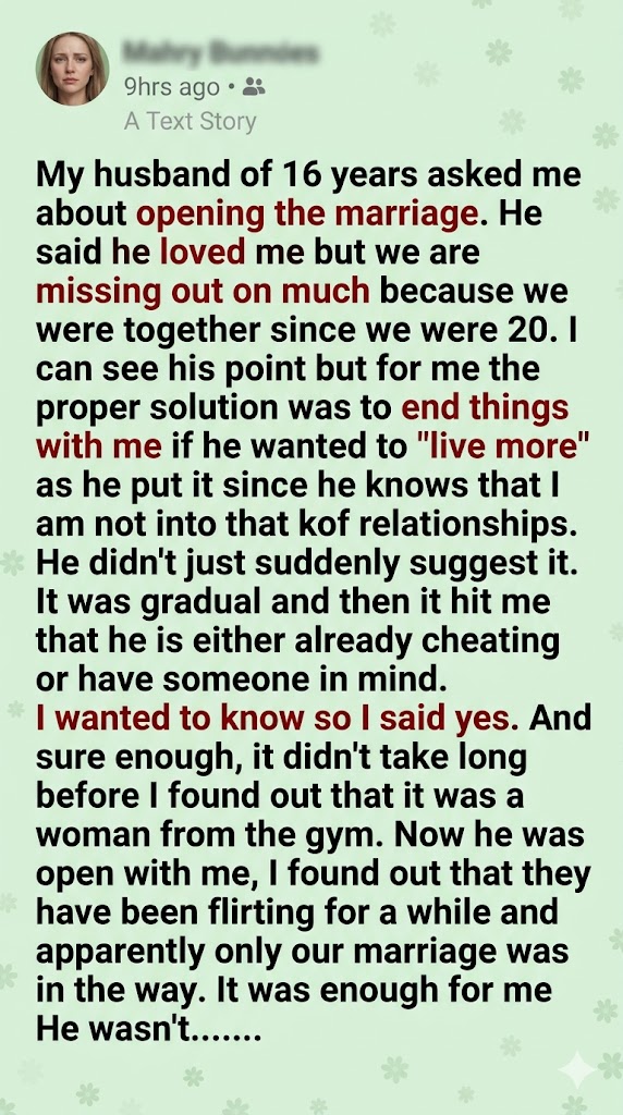 … looking for an open marriage; he was looking for a permission slip to cheat without guilt, keeping me securely tethered as his comfortable backup plan.