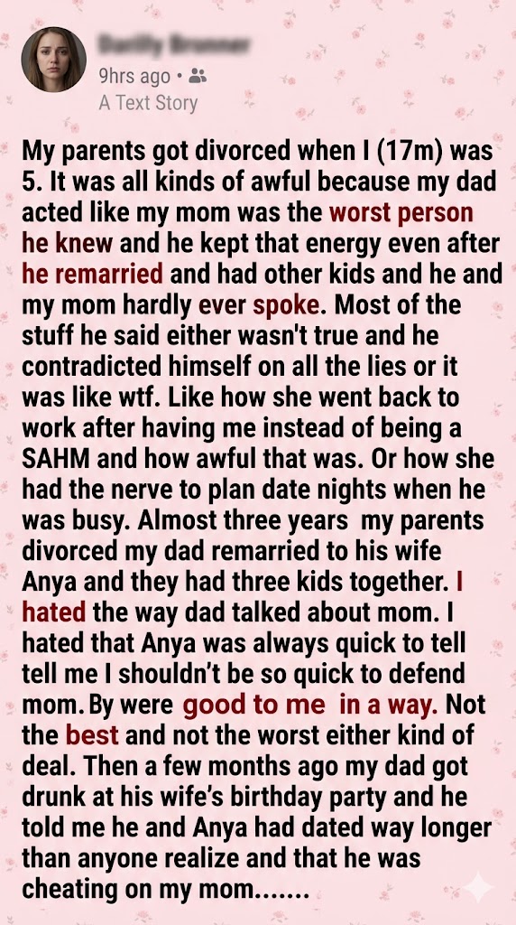 My mom reached across the table and took my hand. “Because you were five,” she said softly. “He told me if I dragged his affair into the divorce, he would spend every dime he had fighting for full custody just to spite me. He threatened to take you away. I chose to let him play the victim so I could keep you safe. I knew one day, you’d be old enough to see the truth for yourself.”