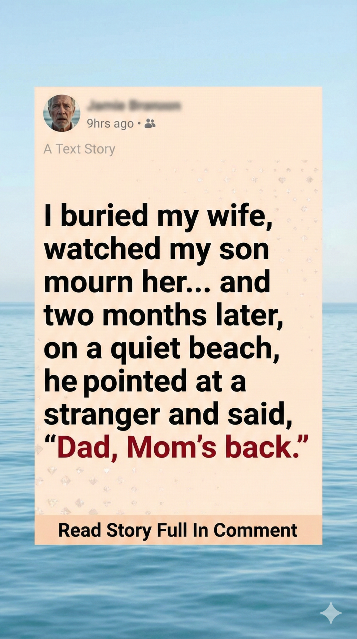 After burying my wife Stacey, I was drowning in grief, trying to stay strong for our five-year-old son, Luke. Her sudden death in a car accident shattered our world. I hadn’t even seen her body—her parents said it was too damaged. I accepted it, numb and broken. Two months later, desperate for healing, I took Luke on a beach vacation. For the first time, he smiled again. But on the third day, he pointed at a woman and said, “Dad, look, Mom’s back!” My blood ran cold. I turned—and saw her. Stacey. Alive.