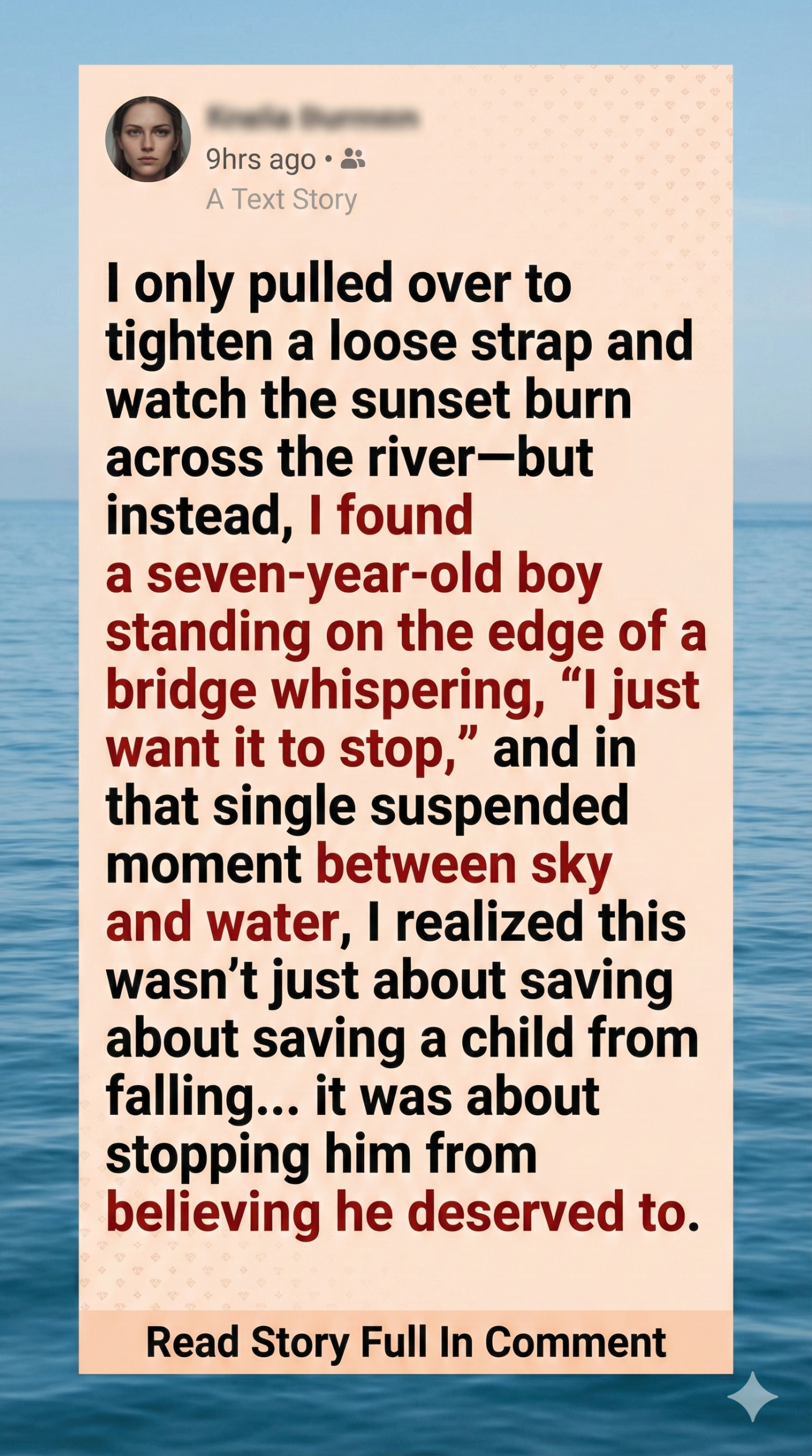 I wasn’t a cop. Wasn’t a social worker. I wasn’t anything except a man who had once stood on a ledge myself at seventeen, staring down at a river that looked exactly like this one. I wasn’t about to leave this kid alone, not now.
